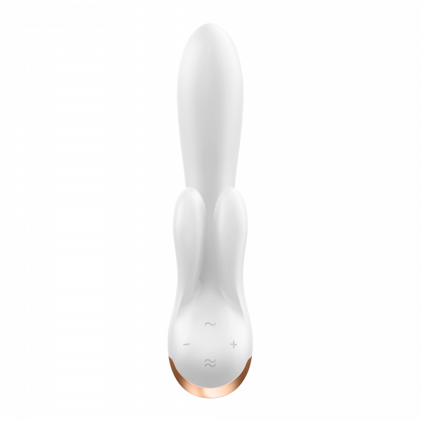 Вибратор с двойным клиторальным стимулятором "Satisfyer Double Flex" + приложение, белый